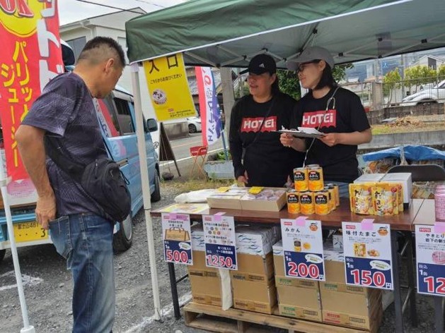 当社からは地元である富士川工場の従業員がお楽しみ袋ややきとり缶詰などを販売し大盛況でした。