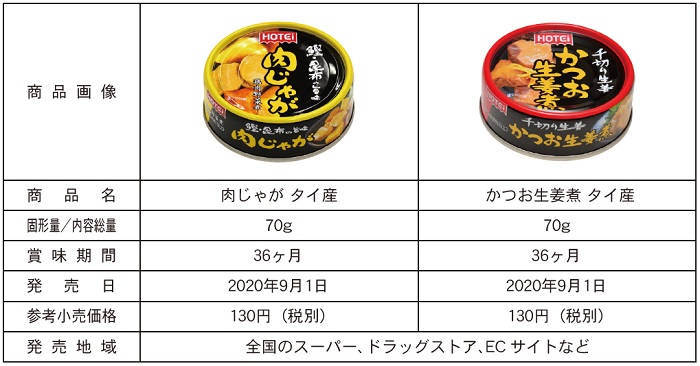 株式会社ホテイフーズコーポレーション(静岡市清水区、代表取締役社長:山本達也)は、鶏肉をじゃがいもや人参と煮込んだ「肉じゃが」と、かつおと千切り生姜を醤油で煮付けた「かつお生姜煮」の2種類の和総菜缶詰を9月1日(火)より、全国発売します。